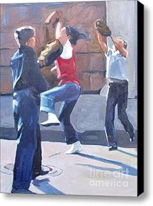 Product Description : Color: Black Border | Size: 15.50" x 20.00"This is a beautiful stretched-canvas print wrapped on 1.5" thick stretcher bars. The print is professionally printed, assembled, and shipped within 2 - 3 business days from our production facility in North Carolina and arrives ready-to-hang on your wall. Fine Art America is home to more than 75,000 artists from all over the world who entrust us to fulfill their print orders online. We offer a 30-day money-back guarantee on every print that we sell and look forward to helping you select your next piece. Keywords: Baseball Canvas Print, Catch Canvas Print, Kids Canvas Print, Summer Canvas Print, Playing Canvas Print