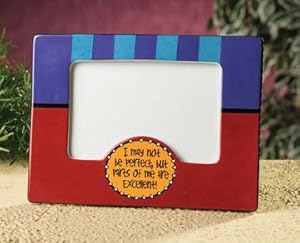 Product Description : Well, who is? But this ?I May Not Be Perfect? picture frame will show everyone who isn?t! A fun way to show off your favorite photo of the consummate fisherman, adolescent angel, or the family nitpicker! Colorful ceramic frame with highlighted motto. Holds a 4 x 6 inch photo.