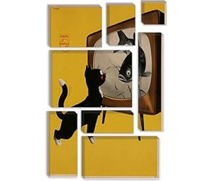 iCanvasART Philips Black and White Tv (Cat and a Fish) Vintage Poster Canvas Print #5177 56"x36" 8-piece: Home & Kitchen
